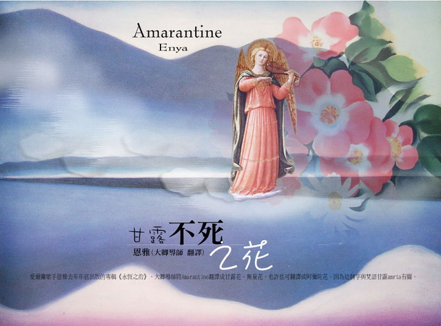 愛爾蘭歌手恩雅去年年底出版的專輯《永恆之約》, 大卿導師將Amarantine翻譯成甘露花、無量花, 也許也可翻譯成阿彌陀花。因為這個字與梵語甘露amṛta有關。