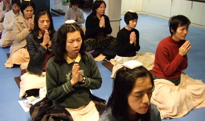 這一次我們的禪修,包括禮佛、經行,都在練習地水火風。禮佛時,謙卑往下時去感覺水的重,貼地時去感覺地的柔軟承載、感覺生命的實在,額頭離地身體往上時去感覺火、感覺生命的向上,直立不動時去感覺風的無內無外,在不動中感覺動。當無內無外的時候,空的感覺就出來了,空的感覺出來之後,識就淨化了。